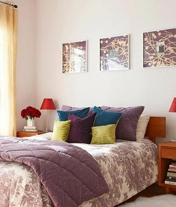 紫色是敏感的、浪漫的,它最能表达秋季家居柔软的一面。在居室中加入紫色的床品和靠包,能让居室气氛更加馥郁。浅棕色和黄色又是极好的中和剂,选择这些色彩互为陪衬,有效地提高了空间亮度,为居室增添厚重与沉稳。