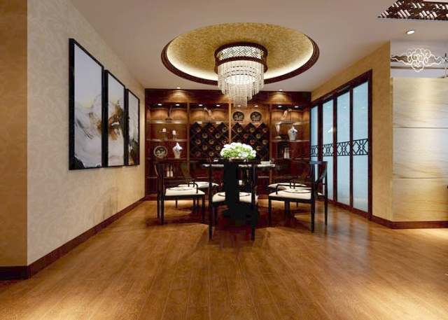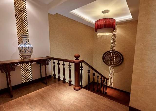 ![]() 运用中式格调的实木雕花吊顶与实木线,结合水晶造型的吊灯打造整体吊顶,厚重的石材干挂手法结合咖啡色的印花玻璃打造的整体电视背景墙体现现代中式的特点 ![]() 实木饰品装饰柜内展示青花瓷饰品,整体家具运用的是现代的实木沙发与明清样式的椅子,以及黑胡桃的整体定制柜子的运用使空间的整体性完美体现。 ![]() 餐厅吊顶金箔的运用体现中式的华贵,但是墙面的丝光壁纸呼应地面的实木复合地板, 让整个空间的视觉效果简单不失风雅。 ![]() 女儿房,紫色纹样壁纸结合现代的床品、长毛地毯,空间其中设计的组合式的家具,满足功能不失大气,既现代又与整体家居风格相关联 ![]() 主卧室的中式元素的软装更是空间的亮点,与墙面的荷花水墨画相得益彰,顶面简洁的吊顶结合实木线打造一个温馨的睡眠空间。 ![]() 卫生间选择石材效果的墙面砖配合青花瓷的洗手盆与实木印花浴室柜,既实用又不失美感。 柜体上的荷花的图案让人联想到夏日的清凉与水面的波光粼粼。 ![]() 墙面壁纸延续一楼的样式统一色调,墙连顶的实木雕花装饰造型辅助隐光源与筒灯,让走廊的空间效果有拓展感,两侧的圆形浮雕造型配合留白,体现了一个小小设计视觉中心 ![]() 新中式的风格,运用现代的手法,运用中式的雕花,明清家具,又有现代的照片墙、实用的家具,打造一个稳重、实用的家居空间。 |