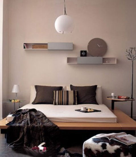 图中卧室里的颜色搭配很低调,白色的被单,咖啡色的枕头,颜色虽不艳丽却显示出一种低调的奢华与品位。