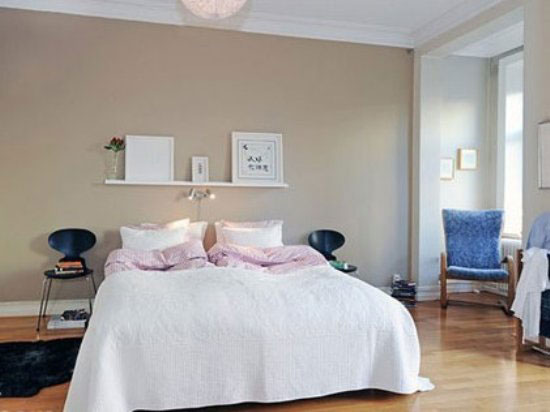原木色的地板和白色的床品,给人予清新自然,具有一定的亲和力。卧室里讲究的是舒服,简洁造型的床头搭配纯棉材质的床品,让睡眠空间温醇而舒适。床头安装一个白色搁架可以放一些装饰品进行装饰,风格随意让人感觉亲切、舒服。 |