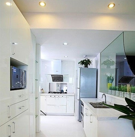白色似乎成为这间厨房的主色调,几只盆栽给厨房增色不少。