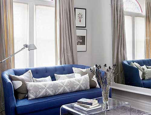 蓝色是地中海风格的一大特点,这里使用蓝色沙发优雅而不失情调,灰白相间的抱枕看起来很暖和,温馨而不乏时尚。超大落地窗户让整个客厅光线极为充足,让客厅得人们感受到外面的阳光明媚。