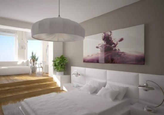 卧室中看来白色是主色调,白色的床,白色的灯,让人感觉有种纯白之美在其中。卧室中光线挺好的,坐在窗前可以晒晒太阳补补钙。床头的这幅画在这单纯白的卧室成了一道亮丽的风景线。植物的放置既装饰了卧室,又为美化了卧室的环境。 |