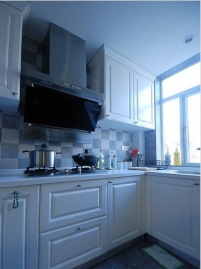 图中的厨房很小,但应有尽有,正所谓“麻雀虽小,五脏俱全”。厨房的窗户这边光线很充足,阳光可以充分晒进来。