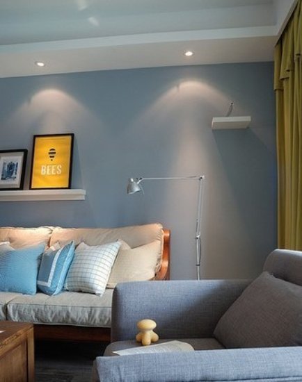 图中是客厅的一角,含有简约风格,既时尚又大气,墙面的粉刷的蓝色与沙发的颜色相得益彰。另一方面,从客厅的椅子上可以看出含有质朴的田园风格的气息。白色的座椅蓝色的抱枕,让家更加贴近自然。