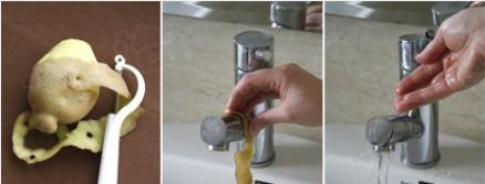 还有,如果您家的土豆放在冰箱里忘了煮,发现已经长芽了,那可千万别吃了,因为长芽的土豆是有毒的。不过也要让它发挥生命的余温,削皮后的土豆直接用其肉身摩擦水龙头,那原本顽固的污渍也会迅速被消灭了。这两种省心又省力还环保的方法您学会了吗? |