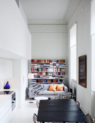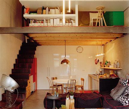 小户型的房屋装修需要注意两点,一是空间利用的不要显得拥挤,二是在美观的的基础上,考虑最高容量的收纳。 白色狭长的空间,靠墙的书架起了收纳和美观的双重作用,灰色和咖色的家居搭配简约而且时尚。橘黄色的抱枕让这个空间瞬间变得更加活泼起来。 有一些小户型在可能的情况下也可以利用上层的空间,这样的设计布局就变得有重要了,严谨的布局不仅能给空间带来等多功能的满足,而且还能使得空间宽敞,不拥挤。