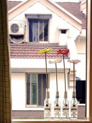 窗前,没有过多装饰,连窗套,也是简单的一块板,再刷上一层白漆。插花的瓶子是上回和朋友K歌时,喝剩下的,觉得还算漂亮,就带回了家。四朵色彩太阳花,将白昼所有的喧哗浮土都埋藏其中。不管窗外春夏秋冬,一切都是自然随意的。