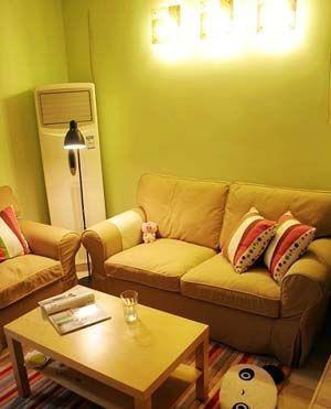 这是客厅一角。橙色主题墙,别的都是淡绿色,卧室则是淡紫色。当初在装修时,所有人都反对,用这么多色彩。现在庆幸,当初坚持了。